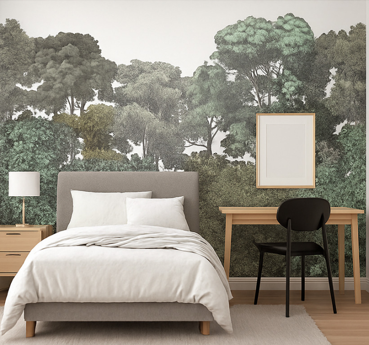 Elegantiškas atogrąžų medžių motyvas paauglių miegamasis sienų fr
