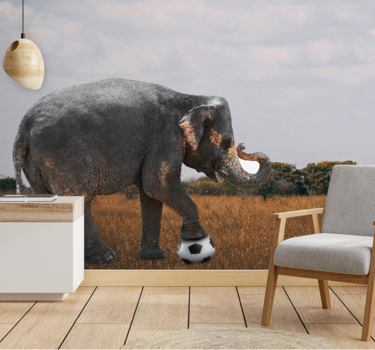 Gyvūnų sienų freska dramblio žaidžiančio futbolą