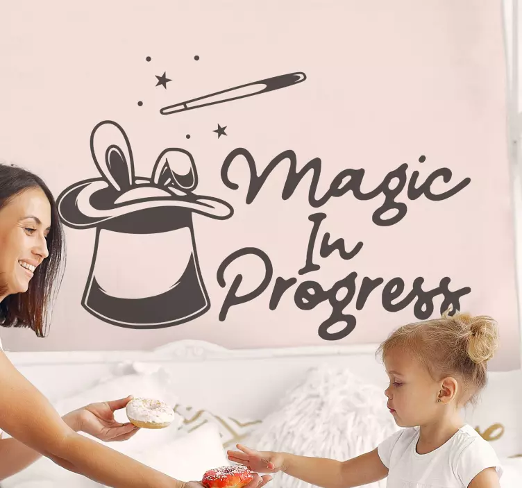 Informacija: A46987Žavinga scena, kurioje matomas stebuklingas skrybėlė, papuošta žaismingais elementais, tokiomis kaip žvaigždės ir stebuklinga lazdelė, puikiai tinkanti kūrybiškumui įkvėpti. Fraze 'Magic In Progress' suteikiama žaismingumo, fiksuojant vaikystės vaizduotės džiaugsmą. Puikiai tinka linksmam erdvėms.