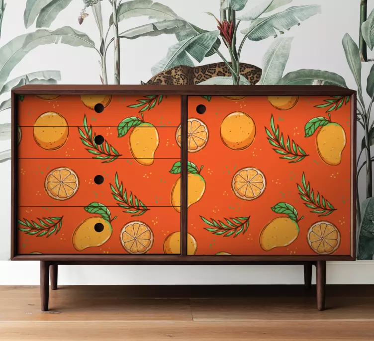 Sveiki atvykę į mūsų pasaulį, kur dekoratyvinis lipdukas su citrusiniais raštais suteiks jūsų erdvei gyvybės! Šis unikalus dizainas, pilnas vaisių, lapų, apelsinų ir citrinų, neabejotinai pritrauks dėmesį. Spalvingi ir šviesūs piešiniai puikiai tiks tiek moderniems, tiek tradiciniams baldams, suteikdami jiems naują išvaizdą ir žaismingumą.
