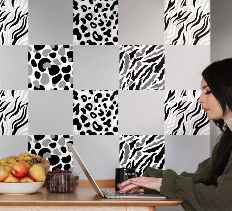 Elegantiški raštai mūsų dekoratyviniame lipduke su elegantiškais raštais sukuria unikalią atmosferą jūsų erdvėje. Šis dizainas, įkvėptas plytelių, leopardų ir gyvūnų raštų, puikiai dera su modernesniais ir geometriniais elementais. Jo vienspalvis ir abstraktus stilius praturtina bet kokį interjerą, suteikdamas jam išskirtinumo ir žavesio.