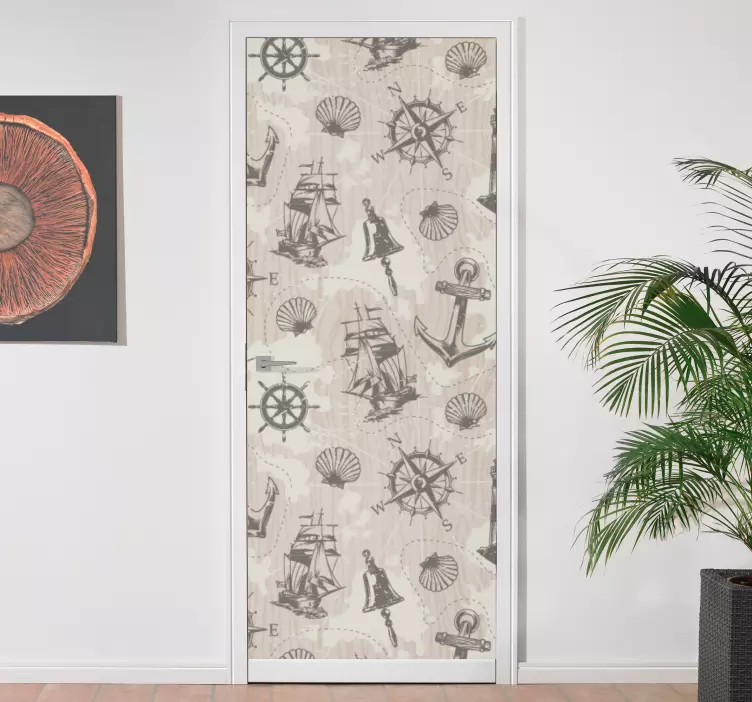 Pasinerkite į jūrinį nuotykį su mūsų Durų lipduku jūrinės nuotykio temos! Šis unikalus dizainas, įkvėptas buriavimo ir jūros, puikiai derina inkarus, medienos lentos, kompasus, švyturius, laivus ir jūros kriaukles. Su šiuo lipduku jūsų durys taps ne tik dekoratyviu elementu, bet ir nuostabiu pasakojimu apie nuotykius, kuriuos galima patirti jūroje. Jūsų erdvė įgaus gyvybės ir spalvų, o kiekvienas, įžengęs pro duris, pajus jūros gaivumą ir nuotykių dvasią!