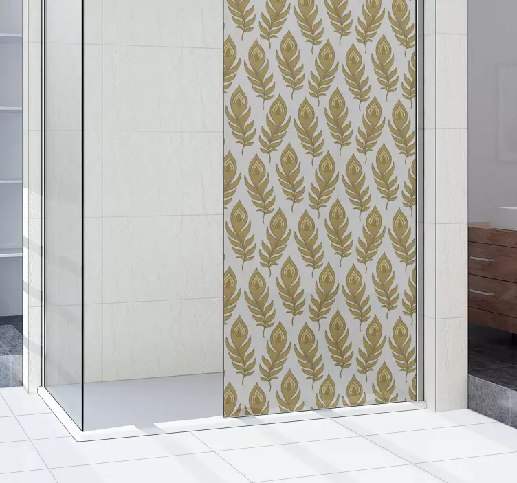 Susipažinkite su mūsų Dušo lipduku elegantiškas lapų elementas, kuris įneša gamtos žavesio į Jūsų dušo erdvę. Šis lipdukas su subtiliais lapų ir gėlių motyvais puikiai tinka bet kuriam interjerui. Jo dekoratyvinis dizainas, įkvėptas plunksnų ir gamtiškumo, suteikia Jūsų dušui elegancijos ir sudėtingumo. Auksinės detalės prideda subtilumo ir unikalumo, todėl šis produktas yra puikus pasirinkimas ieškantiems įkvėpimo savo namuose!