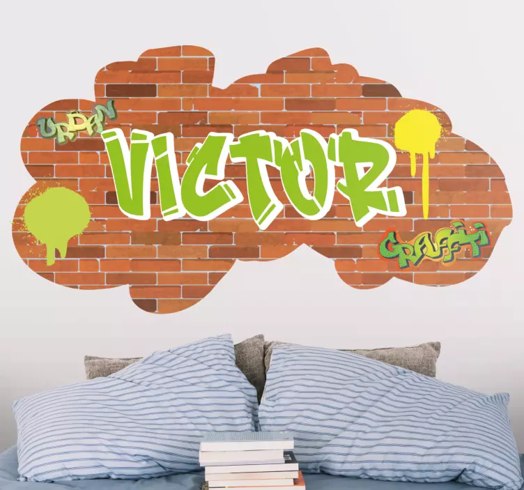 Informacija: A49593Vibrantiška ir pritaikoma detalė, kurioje pateikiamas vardas drąsiu graffiti stiliumi ant plytų fono, papuošta spalvų pliūpsniais. Ideali, norint pridėti asmeninį akcentą bet kuriai erdvei, ši dizaino idėja sustiprina urbanistinį estetiką ir leidžia išreikšti individualumą.