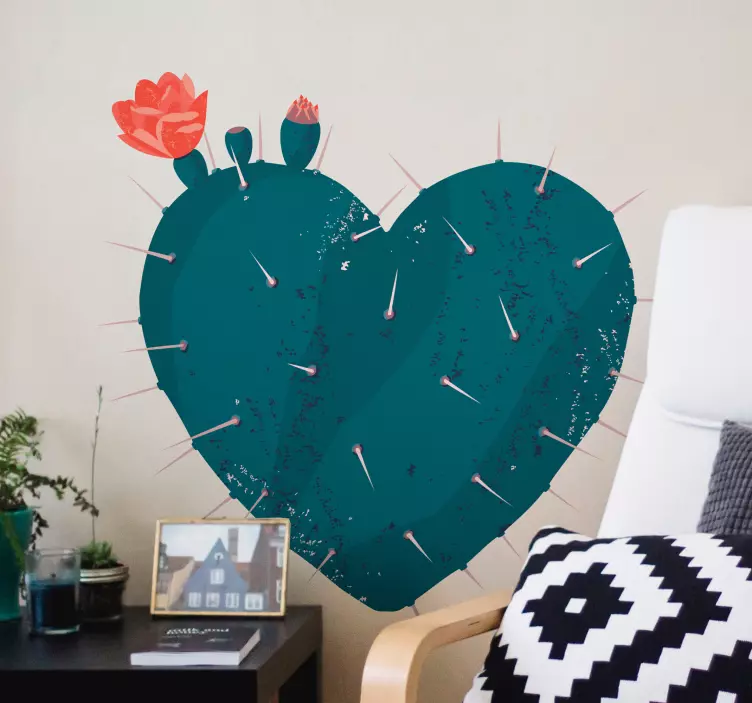 Gamtos lipdukas širdies formos kaktusas yra nuostabus dizaino elementas, kuris sujungia širdies formą, kaktuso iliustraciją ir rožines gėles. Šis unikalus lipdukas, puikiai atspindintis gamtos grožį, suteiks jūsų erdvei šilumos ir gyvybingumo. Spygliai ir augalų motyvai ne tik puošia, bet ir simbolizuoja meilę ir rūpestį, taip praturtindami jūsų aplinką.