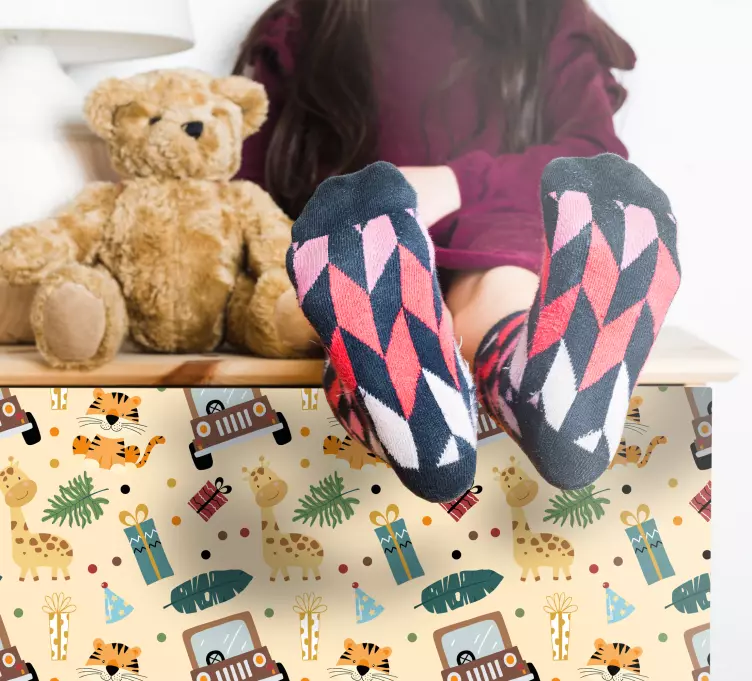 Pasinerkite į žaismingą safari nuotykį su Gamtos lipduku žaismingiems safari elementams! Šis unikalus dizainas puikiai sujungia gyvūnų, animacinių filmų ir gamtos temas, sukuriant nuostabią atmosferą jūsų erdvėje. Žirafos, tigrai ir džiunglių nuotykiai atgaivins kiekvieną kambarį, o vaikams tai taps tikra dovana, skatinanti kūrybiškumą ir žaidimus. Džipai ir gamtos vaizdai sukuria puikų fono dekorą, kuris ne tik džiugina, bet ir įkvepia!