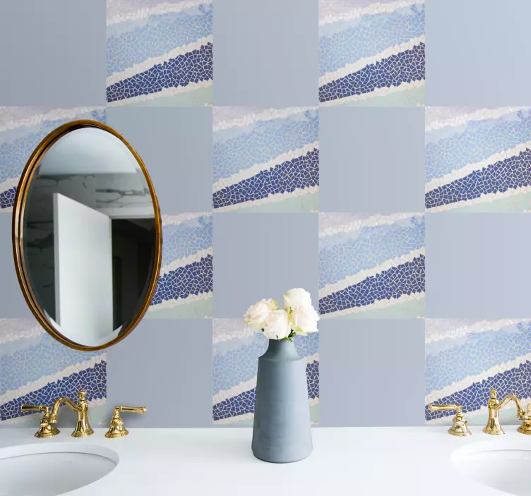 Gyvūnų lipdukas abstrakčiu raštu mozaika yra puikus pasirinkimas tiems, kurie nori suteikti savo interjerui unikalumo ir stiliaus. Šis mozaikinių gyvūnų dizainas, kuriame dominuoja mėlyni tonai, geometrinės figūros ir tekstūruotas dizainas, puikiai tinka moderniems interjerams. Su bangomis ir plytelėmis jis ne tik praturtina erdvę, bet ir suteikia jausmą, kad namuose gyvena menas!