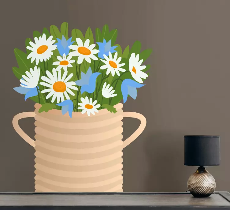 Sveiki atvykę į mūsų unikalų pasaulį, kur Gyvūnų lipdukas gėlių kompozicijų vazai suteikia galimybę sukurti nepakartojamą atmosferą jūsų namuose! Šis nuostabus dizainas derina vazos, gėles, ramunes, mėlynus žiedlapius ir žalius lapus, puikiai atspindintis gamtos grožį. Jūsų erdvė taps gyvesnė ir jaukesnė, o kiekvienas žvilgsnis į šį dizainą primins apie nuostabią gamtos harmoniją!