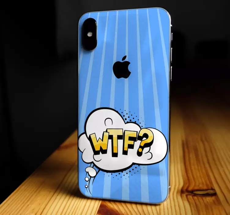 Informacija: A48535Vibrantiškas dizainas turi minties burbulą su tekstu 'WTF?'. Žaisminga tipografija išsiskiria prieš šviesiai mėlyną foną, puošiamą vertikaliomis juostelėmis, sukurdama modernią estetiką, kuri gali pagerinti asmeninę išraišką.
