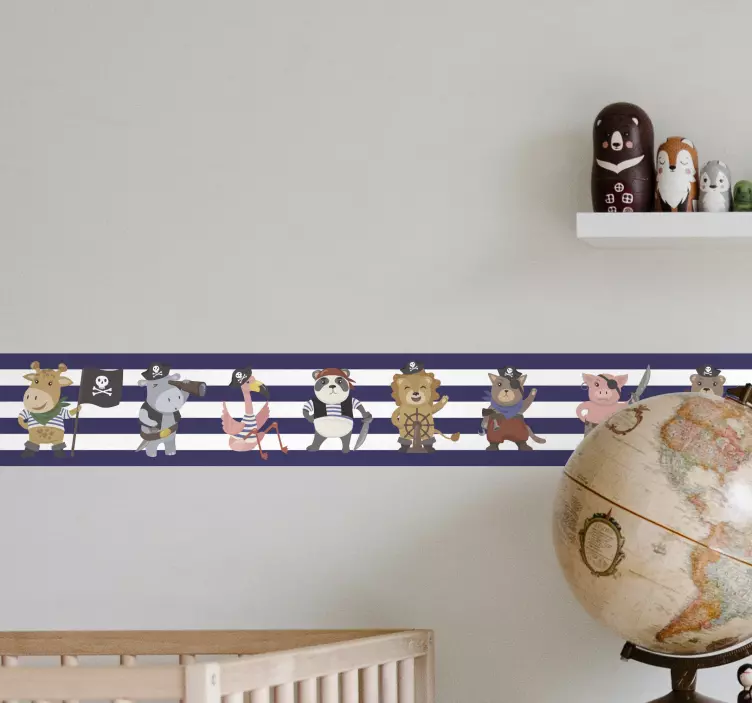 Informacija: A47219Spalvinga piratų tematikos gyvūnų personažų kolekcija, demonstruojanti žaismingas pozas. Kiekvienas gyvūnas dėvi įvairius piratų aksesuarus, sukurdami malonią ir nuotykių kupiną atmosferą, puikiai tinkamą vaikų erdvėms. Dizainas turi dryžius, pridėdamas stilingą jūrinį elementą bendrai temai.