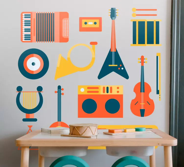 Gyvūnų lipdukas ryškūs muzikos instrumentai