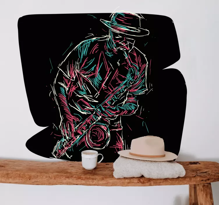 Susipažinkite su mūsų unikaliu Gyvūnų lipduku saksofonininku grojančiu, kuris atneša džiazo dvasią į bet kurią erdvę. Šis abstraktus dizainas įkūnija muzikos ritmą ir energiją, apimantį džiazo stilių ir jo žavesį. Džiazmenas su saksofonu vilioja savo piešimo stiliumi, o muzika ir muzikantas sukuria nepamirštamą spektaklį. Skrybėlė ant galvos tik dar labiau pabrėžia šio nuostabaus lipduko žavesį!