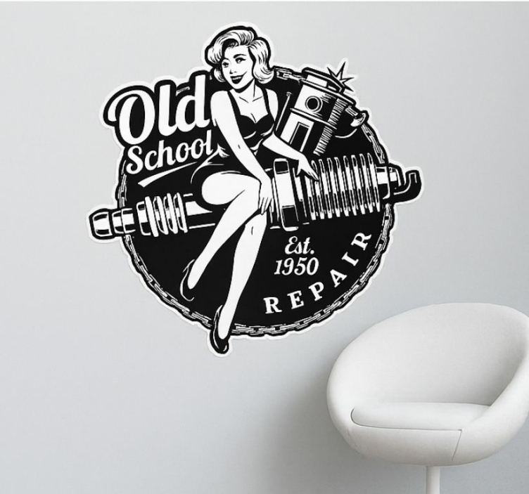 Gyvūnų lipdukas senovinės garažo pinup motyvu