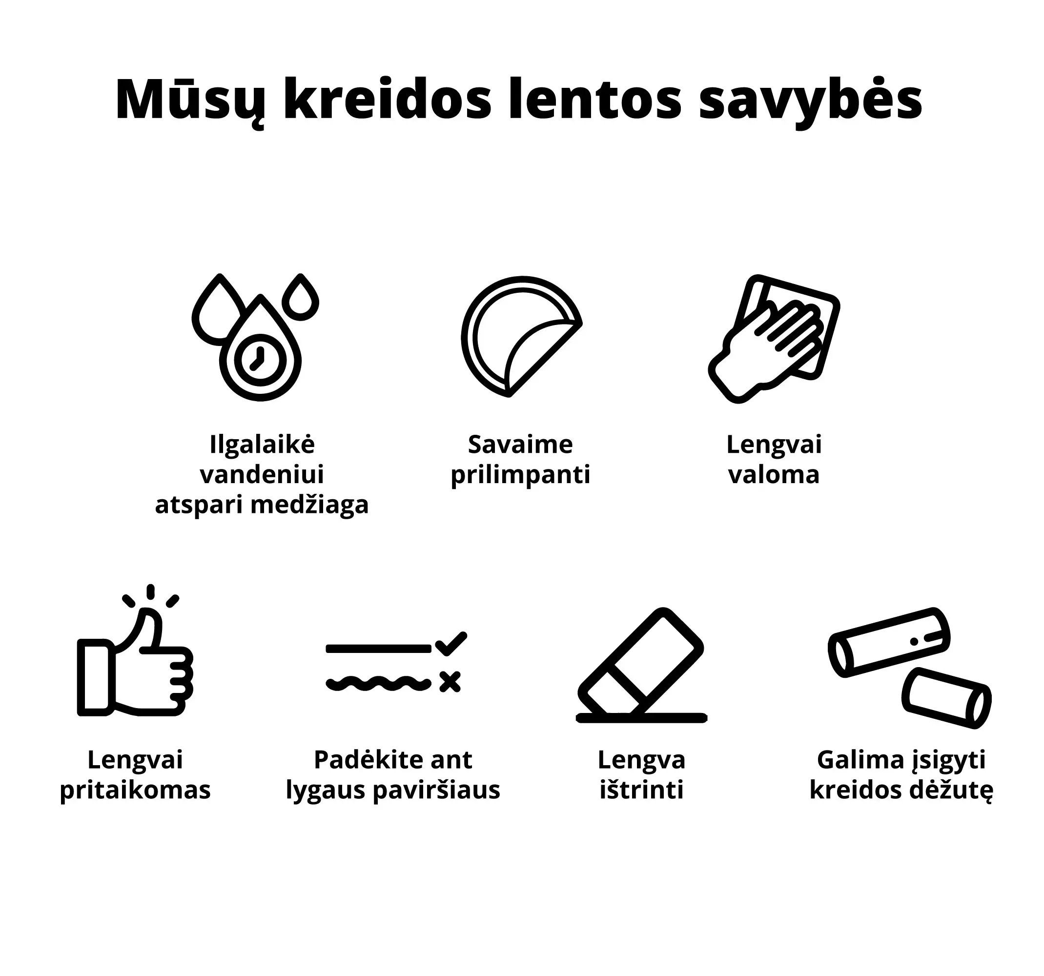 * Jei įsigijote vinilo rašymo lentos lipduką, klijuokite jį ant visiškai lygaus paviršiaus. Mažiausias paviršiaus nelygumas paveiks rašymo lentoje ir trynimo kokybę.