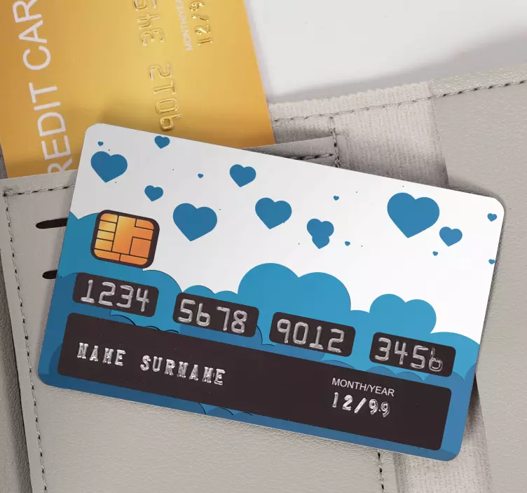 Susipažinkite su Kredito kortelės lipduku debesų širdelių raštu! Tai žaismingas ir mielas produktas, puikiai tinkantis tiems, kurie nori savo kreditinei kortelei suteikti unikalų stilių. Mėlynos debesų širdelės džiugina akį ir įneša šilumos bei meilės į kasdienybę. Šis lipdukas yra ne tik gražus, bet ir praktiškas, todėl galėsite jį naudoti tiek namuose, tiek ir biure!