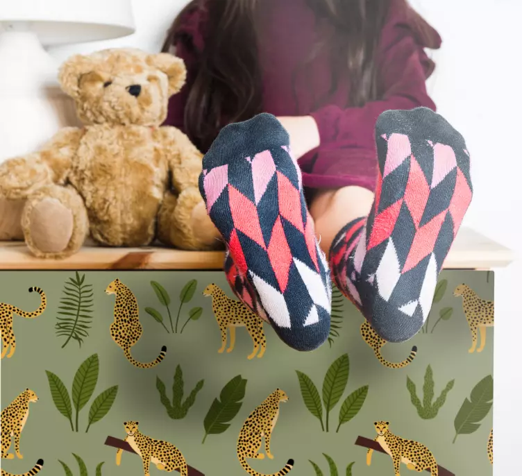Pasinerkite į laukinės gamtos pasaulį su mūsų Laukiniai gyvūnai lipdukas leopardų raštu! Šis unikalus dizainas, įkvėptas leopardų, džiunglių ir žalių lapų, puikiai tinka bet kokiems baldams ir interjero sprendimams. Leopardai ir atogrąžų motyvai sukuria gyvybingą ir dinamišką atmosferą, leidžiančią mėgautis gamta net ir patalpose. Šis modelis yra ne tik estetiškai patrauklus, bet ir praktiškas, nes jį lengva prižiūrėti ir montuoti.