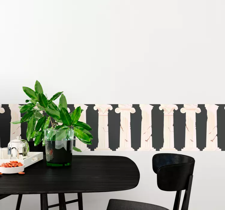 Sveiki! Mūsų Lipni kraštinė klasikinio stulpelio dizaino gaminys - tai elegantiškas ir tradicinis sprendimas, puikiai tinkantis interjerui. Šis dizainas, įkvėptas senovinių graikų stulpelių, suteikia unikalų akcentą jūsų sienoms. Marmuro efektas ir juodas fonas sukuria stilingą atmosferą, leidžiančią išsiskirti bet kuriame kambaryje!