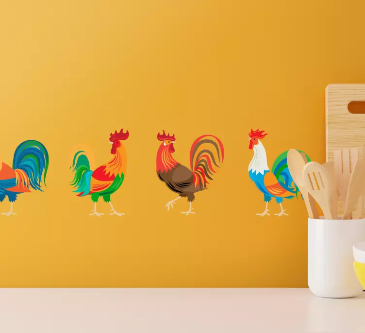 Sveiki atvykę į mūsų unikalaus produkto pasaulį - Lipni kraštinė spalvingam gaidžiui rodyti! Šis nuostabus lipdukas, puikiai atspindintis gaidžio, gyvūno ir ūkio tematiką, yra idealus sprendimas, norint papuošti jūsų virtuvę ar bet kurią kitą erdvę. Spalvingas dizainas ir aukšta kokybė užtikrina, kad jūsų siena atrodys išskirtinai ir žaismingai!