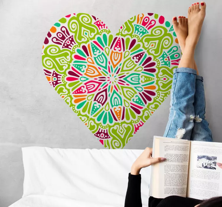 Meilės lipdukas gyvybingo širdies motyvas yra nuostabus dizainas, apjungiantis širdies figūrą ir mandalą, kuris užpildytas įvairiaspalviais ir gyvybingais atspalviais. Šis spalvingas dizainas suteikia šilumos ir džiaugsmo bet kuriai erdvei, kurioje jis yra naudojamas, todėl jis puikiai tinka tiek namų, tiek biuro dekoravimui!