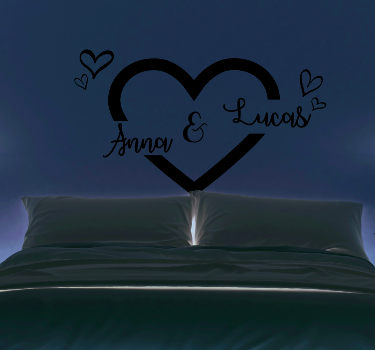 Informacija: A50128Žavus ir pritaikomas širdies dizainas, kuriame pavaizduoti vardai "Anna" ir "Lucas", papuoštas žaismingomis širdelėmis. Puikus būdas pridėti asmeninį akcentą jūsų gyvenamajai erdvei, šis dizainas idealiai tinka romantiškoms aplinkoms ir gali būti pritaikytas atspindėti jūsų unikalią meilės istoriją.