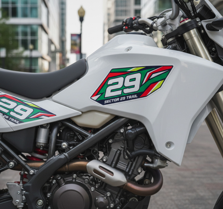 Pritaikyti Motociklo lipduką 29 sektoriaus takas motociklo lipduką yra labai paprasta. Jis gali būti klijuojamas ant bet kokio lygaus paviršiaus, o montavimas užtruks vos kelias minutes. Jei norite, galite įsigyti mentelę, kuri padės užtikrinti tobulą rezultatą, tačiau ji nėra nemokama. Pasirūpinkite, kad paviršius būtų švarus ir sausas, kad lipdukas tvirtai laikytųsi ir ilgai džiugintų jus savo išvaizda!