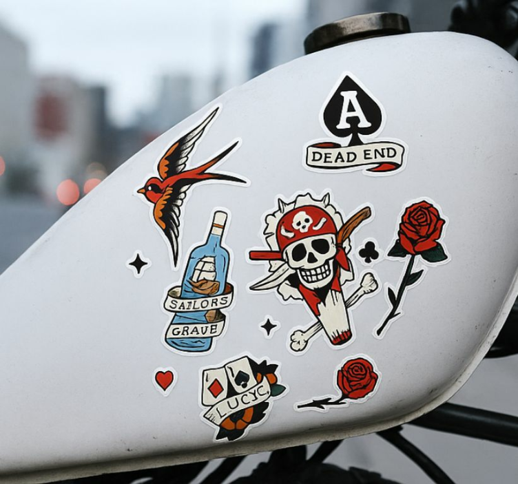 Motociklo lipdukas kuro bako tatuiruotė motociklo lipdukas yra labai lengvai montuojamas. Tereikia nuvalyti paviršių, ant kurio norite jį klijuoti, ir atsargiai uždėti gaminį. Jei norite, galite įsigyti mentelę, kuri padės užtikrinti, kad lipdukas būtų uždėtas tolygiai ir be burbuliukų. Priklausomai nuo jūsų pageidavimų, galime pagaminti lipdukus pagal užsakymą, todėl galite rinktis norimus dydžius!