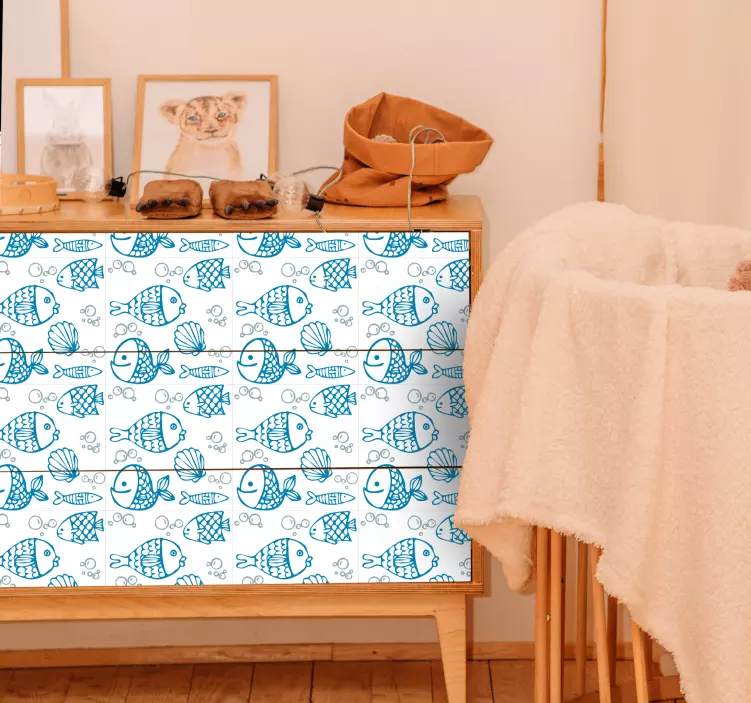 Šaldytuvo lipdukas žaismingų žuvų motyvais yra puikus pasirinkimas, norint pridėti linksmo ir spalvingo akcento į vaikų kambarį ar bet kurią kitą erdvę. Šis dizainas apima povandeninę tematiką, kurioje žuvys plaukioja tarp jūrų augalijos ir gyvūnijos. Su burbuliukais ir kriauklėmis, jis sukuria nuostabų vandenyno pasaulį, kuris įnoringai papuoš jūsų namus!