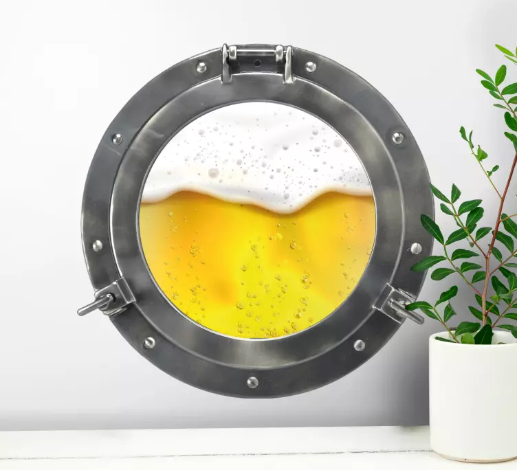 Pasinerkite į virtuvės pasaulį su mūsų unikaliu sienų lipduku virtuvei alaus lango vaizdas! Šis dizainas, kuriame susipina povandeninis laivas, alus, langas, alus darykla, putos ir gėrimas, atneša šventinę nuotaiką ir jaukumą į jūsų namus. Statinės ir apskritos formos elementai suteikia įdomumo, o alkoholio tema su sveikinimais maloniai džiugins visus svečius!