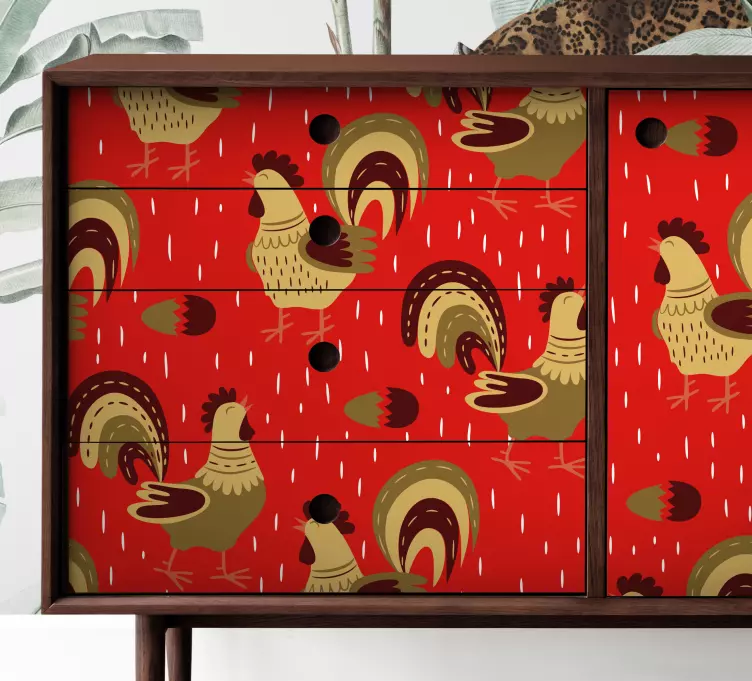 Ūkinio gyvūno lipdukas žaismingų gaidžių raštu gali būti lengvai pritaikomas bet kokiuose lygiuose paviršiuose. Tiesiog pasirinkite norimą vietą, nuvalykite paviršių, ir galite džiaugtis nauju dekoru! Be to, jis yra plaunamas ir atsparus, todėl puikiai tiks tiek vidaus, tiek lauko erdvėms. Pasiruoškite papuošti savo namus šiuo nuostabiu lipduku!