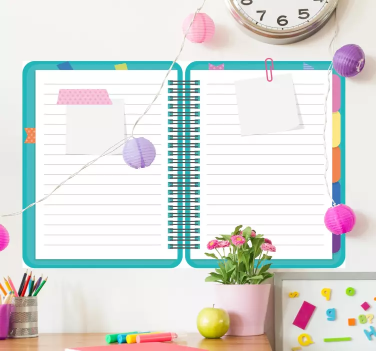 Informacija: A9024Get organized with this excellent sticker! Easily apply it to the wall and freely draw on it with the included pen. Write down your important reminders and appointments, much more efficiently than with a pen and paper! Decorative design with different colored tabs for a notebook. Perfect for bedrooms or office spaces.