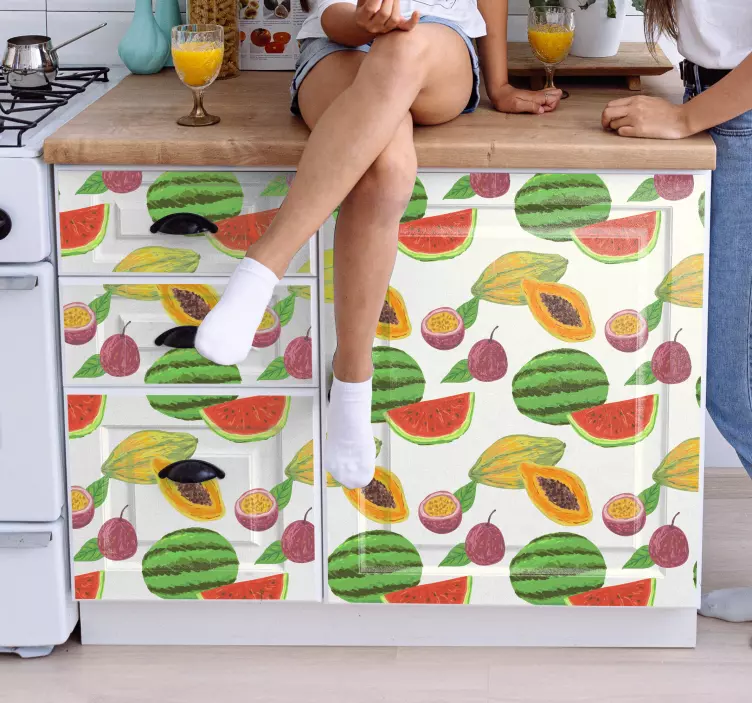 Sveiki atvykę į mūsų Vaisių lipdukas vaisių motyvų kūrimas pasaulį, kur spalvingi arbūzai, papajos ir citrinos sukuria nepakartojamą atmosferą bet kuriame interjere. Mūsų dizainas apima atogrąžų vaisių motyvus, kurie puikiai tinka tiek namų, tiek komercinėms erdvėms. Modeliai yra sukurti taip, kad atspindėtų natūralią gamtos grožį, o baldai ir kitos dekoracijos gali būti puikiai derinamos su šiuo unikaliu produktu.