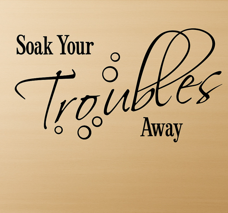 Informacija: A54844Papuoškite savo erdvę maloniu dizainu, kuris skatina atsipalaidavimą ir streso mažinimą. Fraze "Soak Your Troubles Away" kuriama ramybės atmosfera, siūlanti paprastą atsipalaidavimo ir naštų paleidimo veiksmą. Apgaubkite savo aplinką pakylėjančia atmosfera, kuri skatina gerovę.
