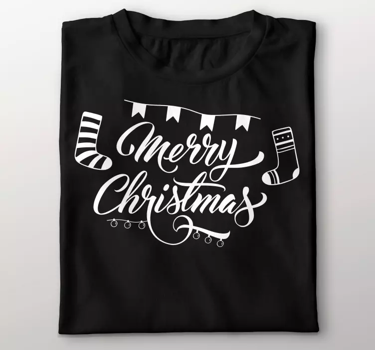 Informacija: T4656Šis išskirtinis dizainas apima frazę 'Merry Christmas' elegantišku šriftu, kartu su šventiniais raštais, tokiais kaip kojinės ir dekoratyvūs elementai, atspindintys šventinę nuotaiką šventinio laikotarpio metu.