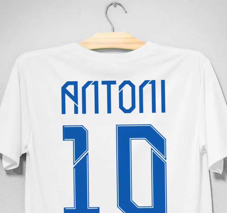 Informacija: T4762Šis dizainas pristato individualizuotą vardą ir numerį ryškiu stiliumi. Drąsi tipografija pabrėžia vardą 'Antoni' kartu su numeriu '10', sukurdama dinamišką ir akį traukiantį vaizdą, tinkantį sporto entuziastams.