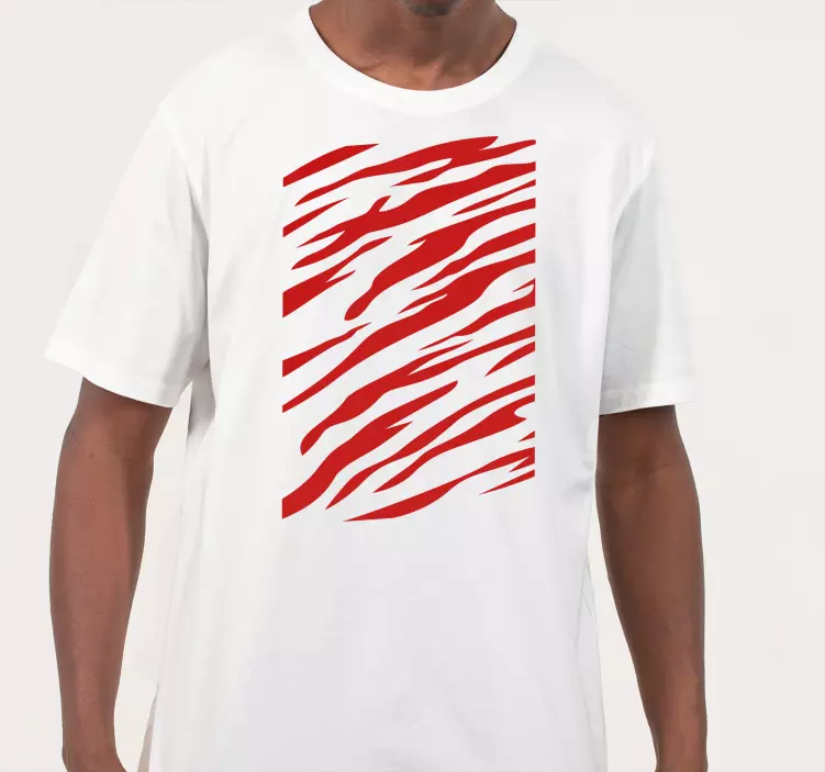 Marškiniai drąsiomis raudonomis juostomis - tai modernus ir dinamiškas pasirinkimas, kuris neabejotinai išsiskiria iš minios. Dizainas apima tigrą, juosteles ir kontrastingą raudoną spalvą, kuri suteikia šiems marškinėliams grafinių elementų, leidžiančių atskleisti jūsų unikalų stilių. Šie marškiniai puikiai dera prie įvairių aprangos stilių ir gali būti nešiojami tiek kasdienai, tiek šventėms!
