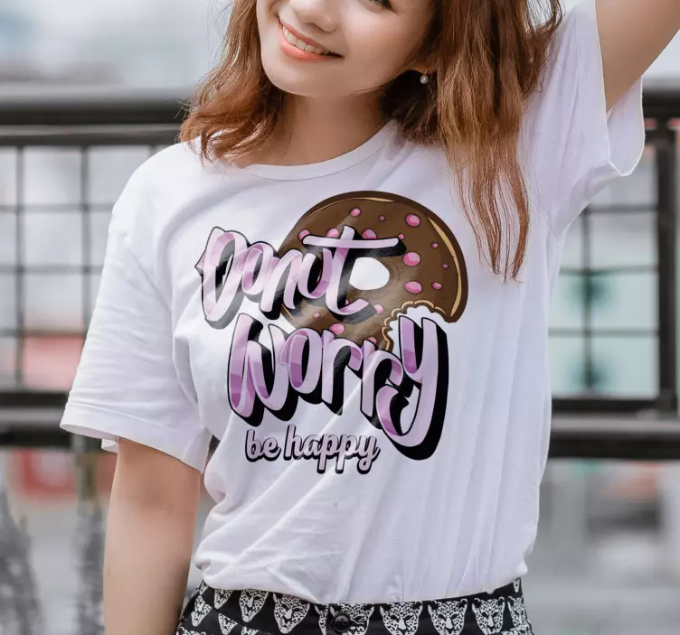 Informacija: T4298Šis gyvybingas kūrinys pristato donutą ir teigiamą žinutę, skatinančią laimę. Žaismingas žodynas ir ryškios spalvos sukuria pakylėjančią atmosferą, todėl jis puikiai tinka kasdieniam dėvėjimui. Idealu tiems, kurie ieško lengvabūdiško išraiškos savo drabužių spintoje.