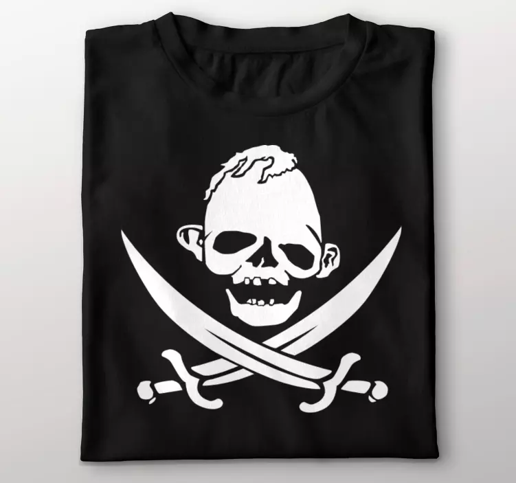 Ar norite ką nors dėvėti su paprasta ir įtikinama piratų estetika? šis tau puikiai tinka. Dizainas turi kardų kryžių su baisia ir ištirpusia kaukole su nelygiomis akimis viršuje. Juodos vėliavos piratų estetika. Gaminys pagamintas iš puikių medžiagų, tokių kaip medvilnė ir nailonas. Etiketės yra nepastebimos ir yra šviežios. Puikiai tinka vasarai.