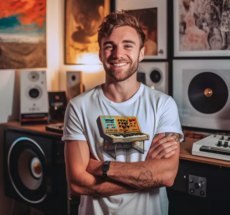 Retro sintezatoriaus klavišas yra puikus pasirinkimas tiems, kurie mėgsta muziką ir nori parodyti savo stilių. Šis marškinėlis turi unikalų sintezatoriaus iliustraciją, kuri sukuria išskirtinį dizainą. Klaviatūros elementai suteikia šiam marškinėliui išskirtinumo ir originalumo.