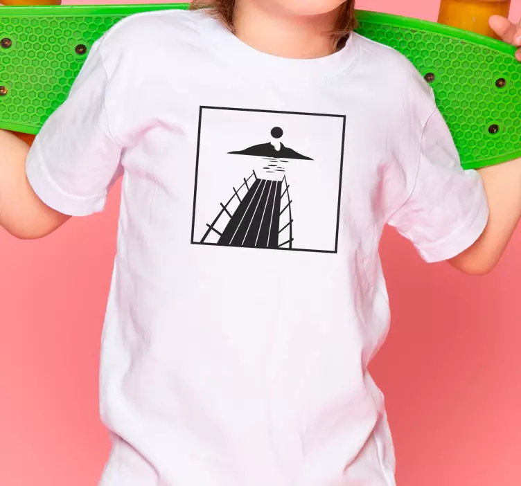 Vaikiški marškinėliai saulėlydis prie liepto yra nepaprasto dizaino kūrinys, kuris puikiai atspindi vasaros džiaugsmą. Šie marškiniai sukurti vaikams, mėgstantiems žaisti lauke, kur saulė šviečia, o vandenys švelniai banguoja. Mūsų dizainas įtraukia natūralius elementus, tokius kaip mediena, dokai, ežeras, kalnas, ir žaismingą vaiką, kuris važinėja riedlente prie vandens prieplaukos. Tai puikus pasirinkimas ne tik žaidimams, bet ir stilingam įvaizdžiui.