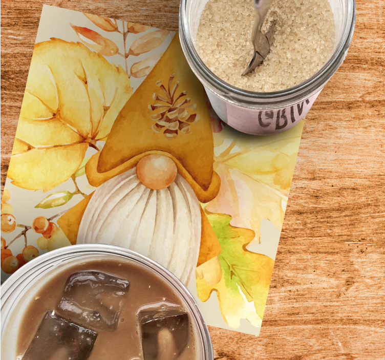 Informacija: B3707Šis dizainas, kuriame pavaizduotas rudens nykštukas, apsuptas spalvotų lapų ir uogų, skleidžia sezoninį žavesį. Nykštukas, puošiamas pušies kankorėžiu, suteikia žaismingą akcentą, simbolizuojantį šilumą ir jaukumą, būdingą rudens šventėms.