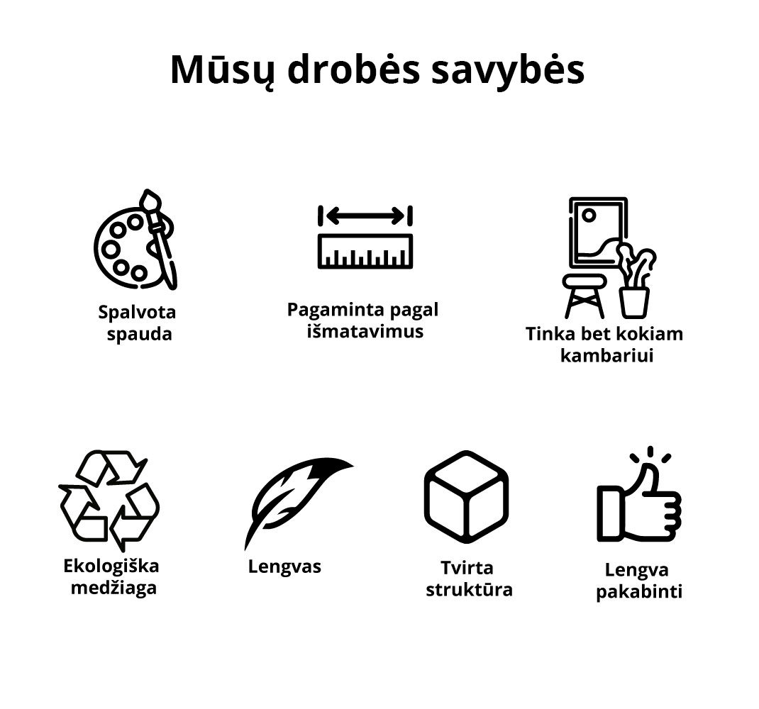 Drobės atspaudai yra originalus, aukštos kokybės gaminys, pritaikytas bet kuriai jūsų namų ar verslo patalpai.