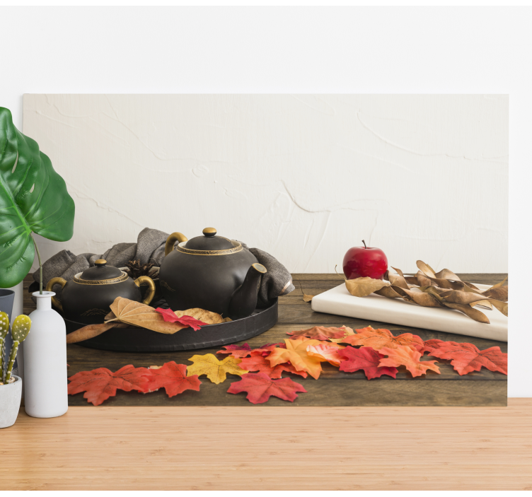 Rudens arbatos kompozicija Drobė peizažai – tai unikalus meno kūrinys, kuris puikiai papuoš jūsų namus! Šiame dizaino projekte subtiliai derinami arbatinukai, lenta, rudens lapai, obuolys ir kaimiškas natiurmortas, sukuriant jaukią ir šiltą atmosferą. Ši kompozicija kviečia pasinerti į raminančią rudens nuotaiką, leidžiant jums mėgautis kiekvienu akimirka šalia stalo, kuriame puikiai dera lapai ir arbatos akcentai.