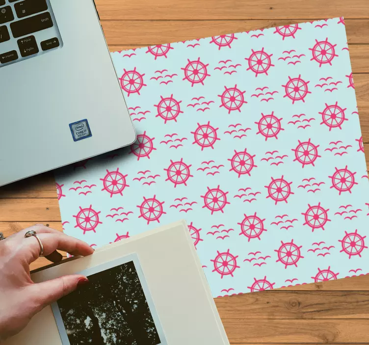 Jūrinis vairas ant ševrono rašto originalus pelės kilimėlis