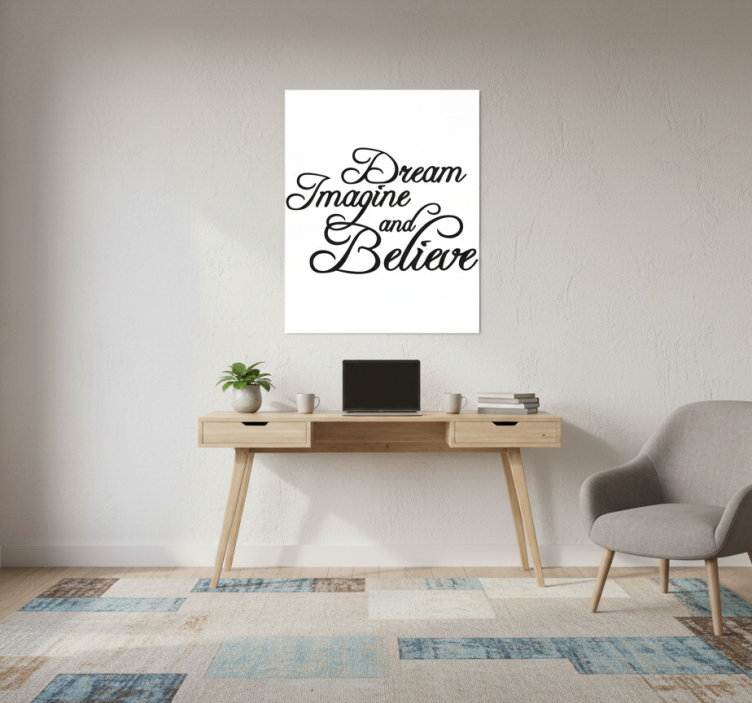 Plakatai biuras svajok, įsivaizduok ir tikėk
