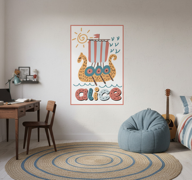 Plakatai jaunimo kambariui asmeniniu vikingų laivu
