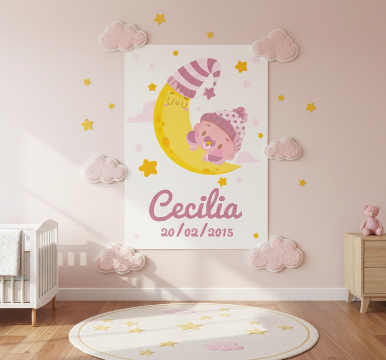 Plakatai vaikų darželis kūdikis su vardu ir gimimo diena