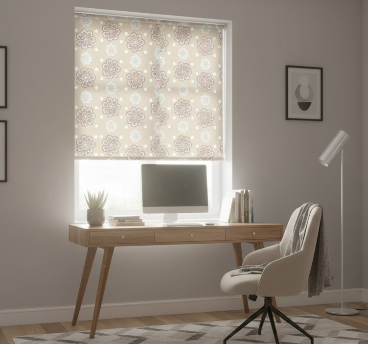 Roletai biuras elegantišku „senelių šarmo“ raštu