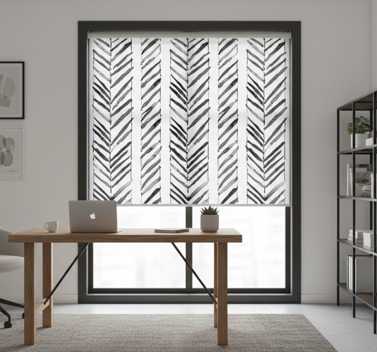 Šiuos Roletai biuras juodai balto geometrinio dizaino lengva pritaikyti bet kuriame biure ar namuose. Rekomenduojame palikti po 5 cm papildomai iš abiejų lango pusių, kad roletai idealiai uždengtų langą. Galite pasirinkti galimybę įsigyti žaliuzę su grandinėle, su varikliu arba namų automatikos su "Orvibo" įrenginiu. Tokiu būdu galite sukurti ne tik stilingą, bet ir funkcionalų interjerą!
