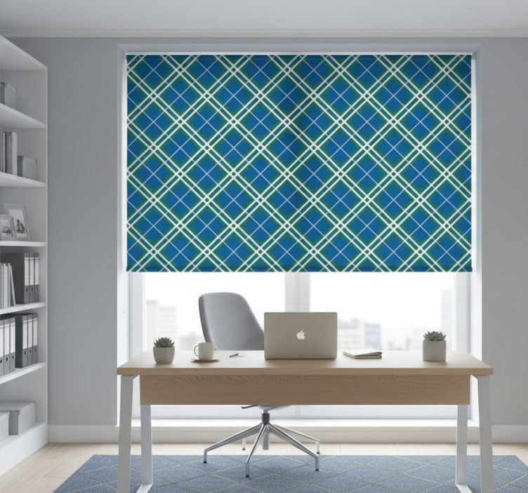 Roletai namų biuras mėlynas ir žalias škotiškas tartanas