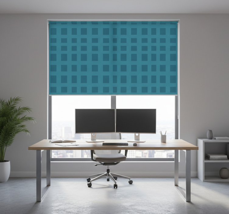 Roletai namų biuras mėlynas raštas su kvadratais